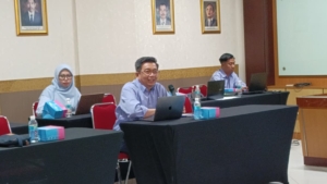 Ketua Jurusan Farmasi UII yang juga Ketua APTFI Prof. Dr. apt. Yandi Syukri, M.Si. menjawab pertanyaan dari rombongan kunjungan Universitas Efarina