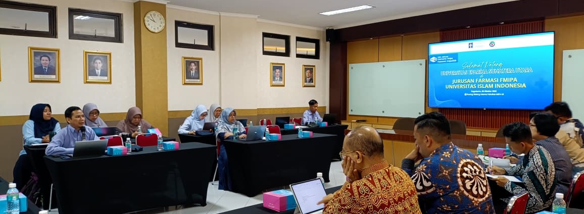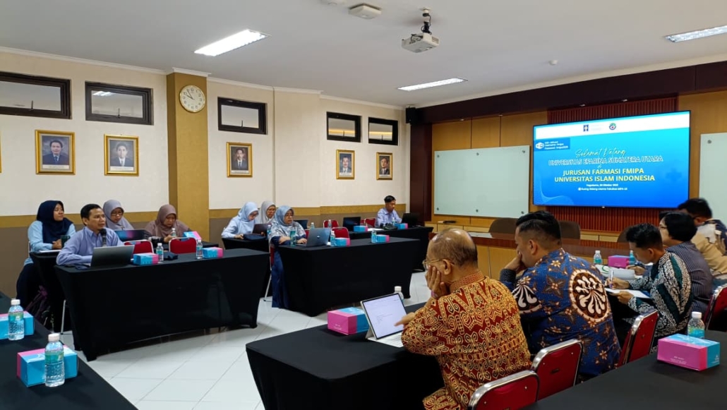 Yogyakarta, 20 Oktober 2025 – Jurusan Farmasi Fakultas Matematika dan Ilmu Pengetahuan Alam (FMIPA) Universitas Islam Indonesia (UII) menerima kunjungan studi banding dari Universitas Efarina, Sumatera Utara. Kunjungan ini berfokus pada upaya peningkatan mutu penyelenggaraan Program Studi Sarjana dan Profesi Apoteker (PSPA), mengingat besarnya jumlah mahasiswa Farmasi di Universitas Efarina.